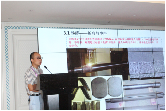 天津工业大学激光所所长雷剑波教授讲述了“现场激光再制造技术及其工业应用”。他首先对比了Trumpf, IPG, Coherent, Laserline, Lasertel, 炬光科技、泛波激光等多家激光器生产厂家的4KW产品用于激光熔覆的优点与缺点。接着他介绍了许多激光再制造的应用案例和一些工艺研究。