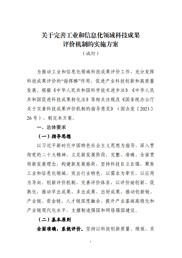 现将《关于完善工业和信息化领域科技成果评价机制的实施方案(试行)》印发给你们,请结合实际,认真贯彻落实。