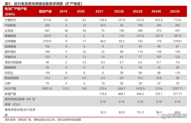 3.2扩产角度看动力电池激光焊接设备市场空间