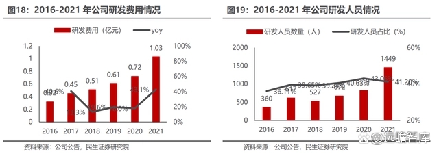 2019-2021年,公司研发费用分别为0.61/0.72/1.03亿元,同比增长19.6%/18%/43.1%,占营收比重稳定在6%-8%。研发人员方面,截至2022年6月31日,公司研发人员达1936人,占员工总人数的40.09%。