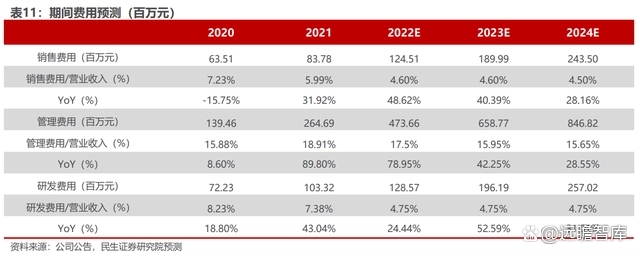 3)研发费用率:随着公司营收规模提升,研发费用率有望保持平稳,我们预计2022-2024年为4.75%、4.75%、4.75%。