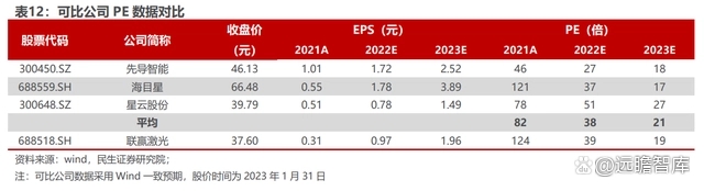 我们采用2023年1月31日收盘价为基准,对应公司PE为124/39/19倍,可比公司PE的均值为82/38/21倍,我们认为目前联赢激光估值水平合适,具备投资性价比。