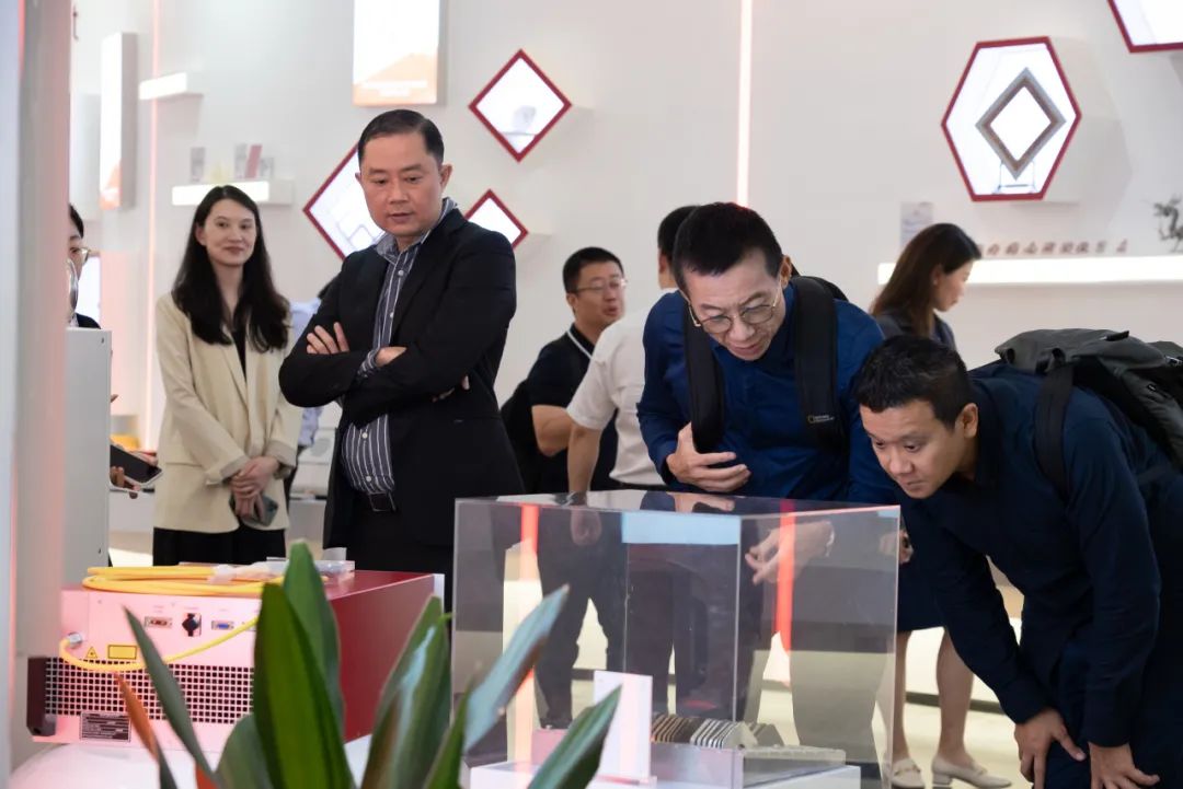 刘健博士带领校友团参观了杰普特展厅,张梦博士讲解了杰普特17年的创业历史和当前的产业布局,详细解说了各种激光器及智能装备应用。彭校长详细询问了激光发展的前沿技术。