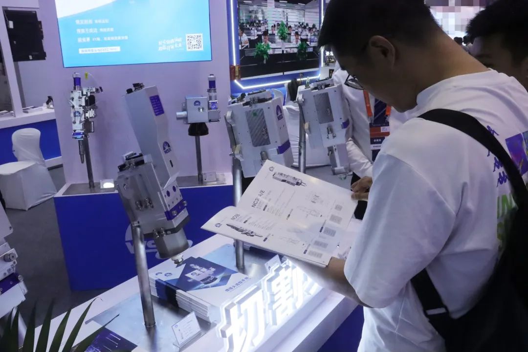 此次展会,万顺兴激光重点展示了15K W-50KW切割头和6KW环形光斑晃动焊接头、6KW振镜焊接头、光学镜片、焊接机器人、手持焊等。该款机器人加焊接头无疑是能够满足全新激光自动化焊接应用的产品,一经亮相,吸粉无数,引发强势围观。
