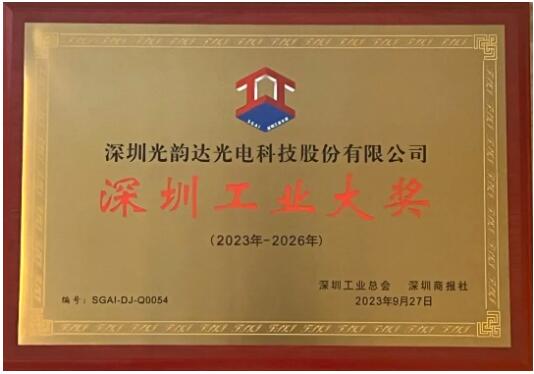 坚守实业报国,振兴民族工业。深圳光韵达光电科技股份有限公司荣获第六届“深圳工业大奖"。此奖项被誉为深圳工业界的“奥斯卡”奖。