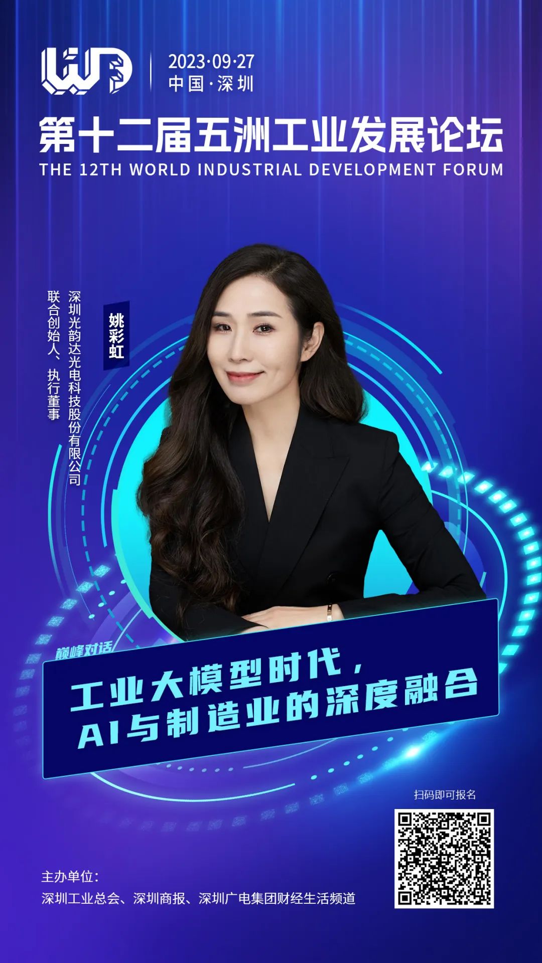 深圳光韵达光电科技股份有限公司联合创始人、执行董事姚彩虹女士作为工业大奖获奖企业、制造业单项冠军获奖企业代表受邀参加巅峰对话环节。