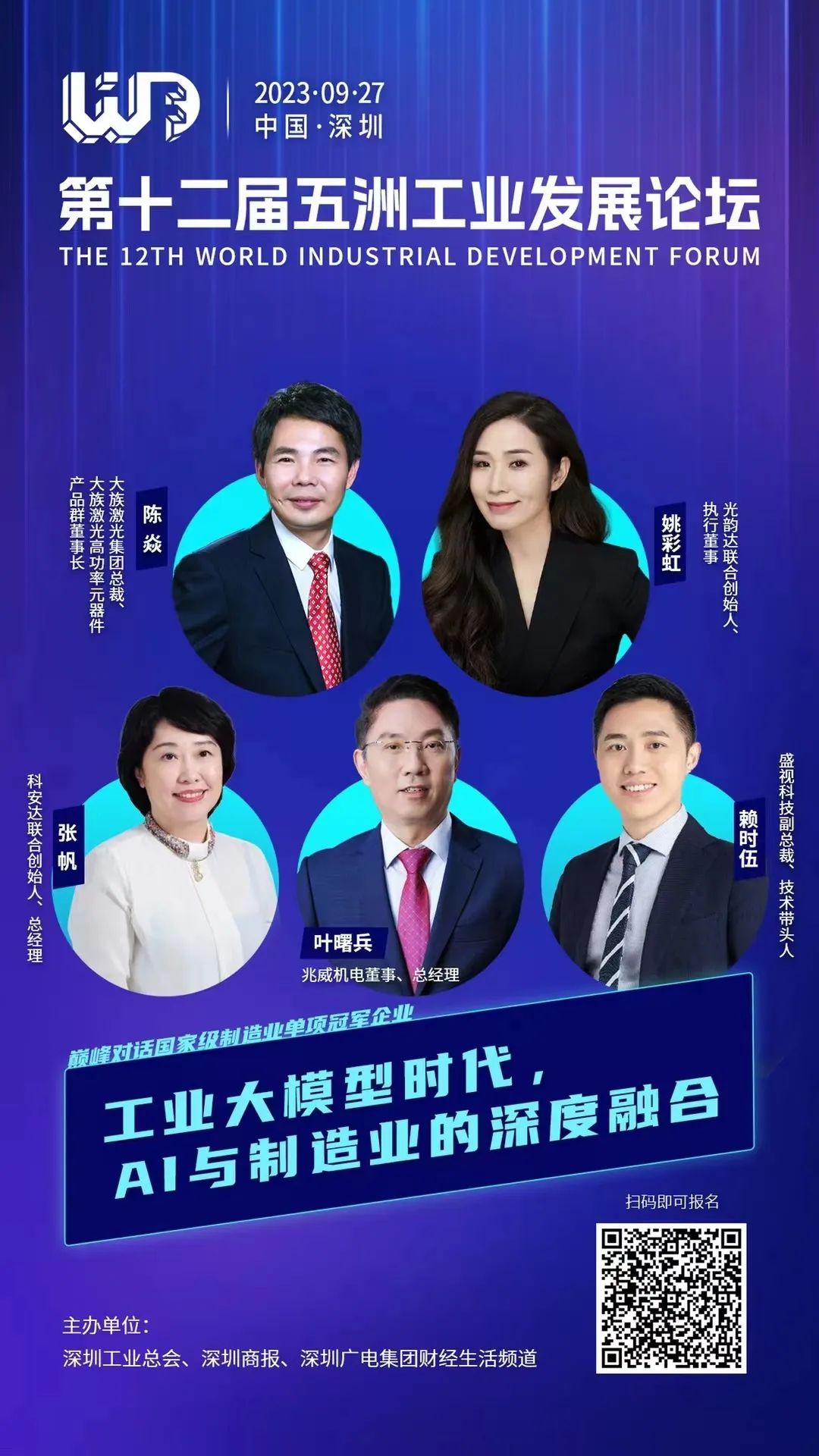 对话论坛上,深圳工业总会主席团主席,深圳华制智能制造技术有限公司董事长,将携手国家级制造业单项冠军——大族激光陈焱副总裁、光韵达姚彩虹执行董事、科安达张帆总经理、兆威机电叶曙兵总经理、盛视科技赖时伍副总裁围绕“工业大模型时代,AI与制造业的深度融合”展开对话。