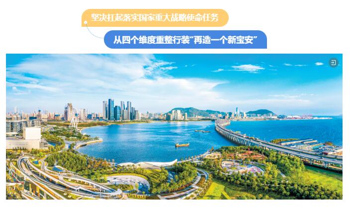 为全面对接粤港澳大湾区、深圳先行示范区、前海“扩区”等国家战略,深层次推动全区经济结构、产业配套、城市功能、城区面貌、公共服务等面向湾区发展大势适配,宝安夯实战略承载力,推动空间重组、格局重塑、定位重构,持续提升开放水平和资源链接能力,为深圳增强大湾区核心引擎功能注入新动能、提供新支撑。
