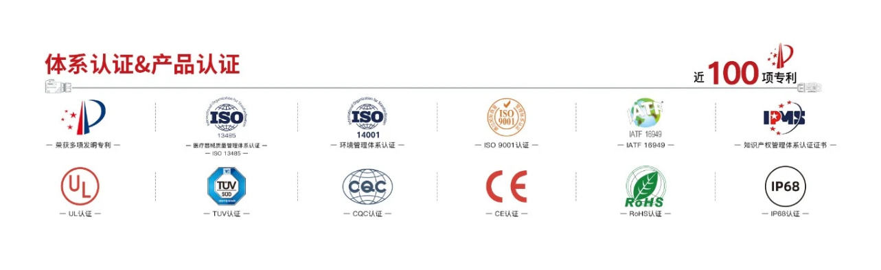 通过长期的自主研发和技术深耕,凌科在技术成果与专利研发上屡建奇功。各项专利成果达100+项,包括数十项海内外发明专利,并基于此打造了含LP、BD、YM、DH等在内的数十个系列的高原创科技产品,契合了市场对原创工业级连接器创新和技术领先性的诉求。