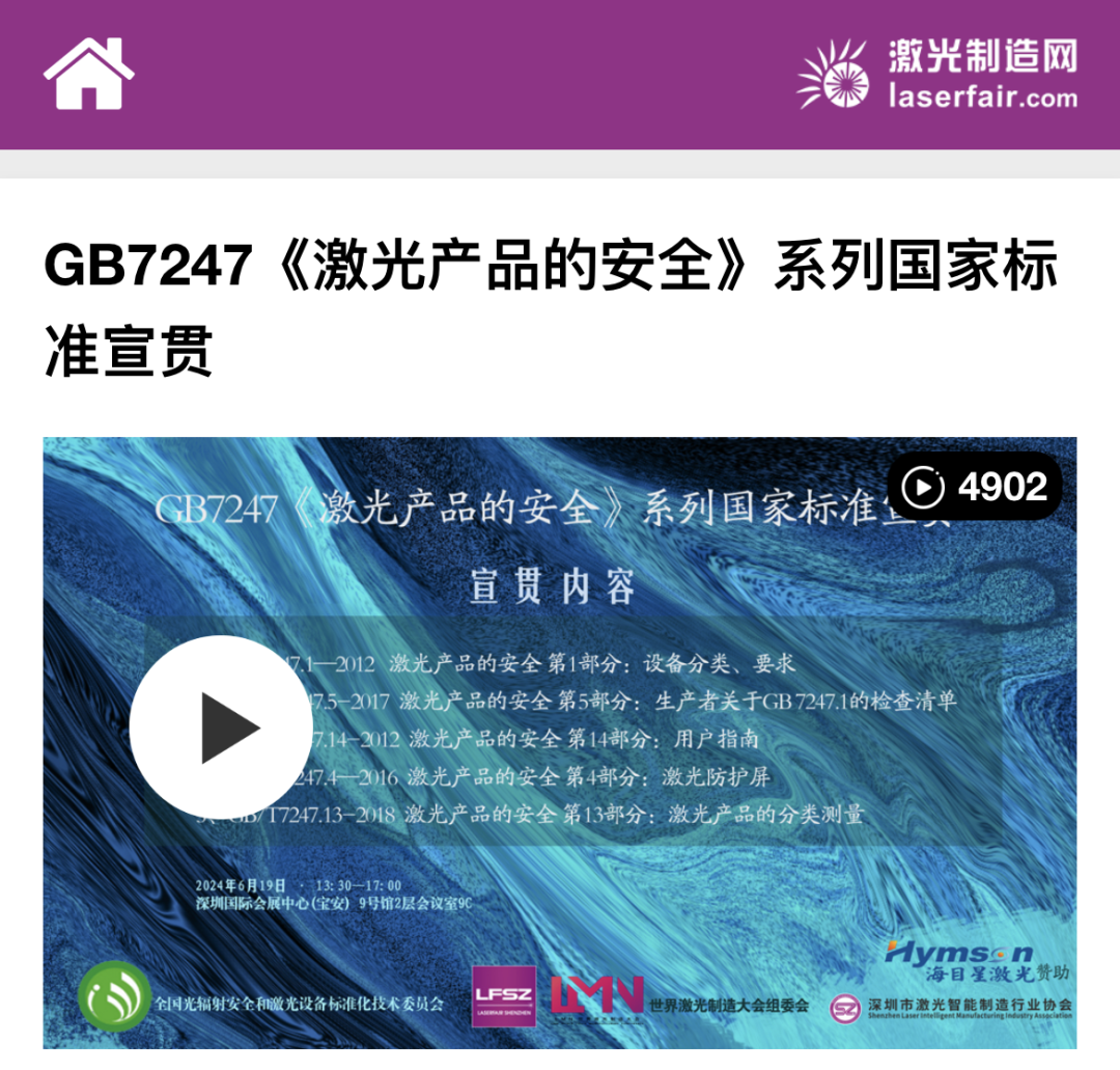 全国光辐射安全和激光设备标准化技术委员会(SAC/TC284,以下简称标委会)作为承办方之一,在世界激光制造大会成功组织召开了GB 7247 系列国家标准宣贯会。本次宣贯会采用线下授课与线上直播相结合的方式进行,全网直播共有4900余人线上观看,线下共有160余人参与宣贯。
