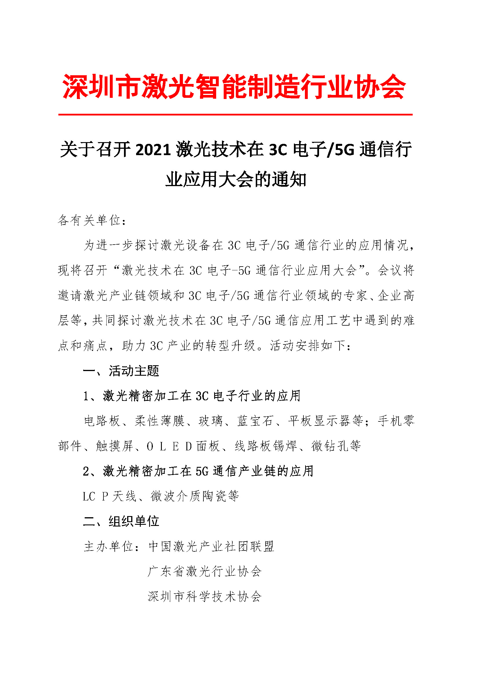 关于召开2021激光技术在3C电子5G通信行业应用大会的通知