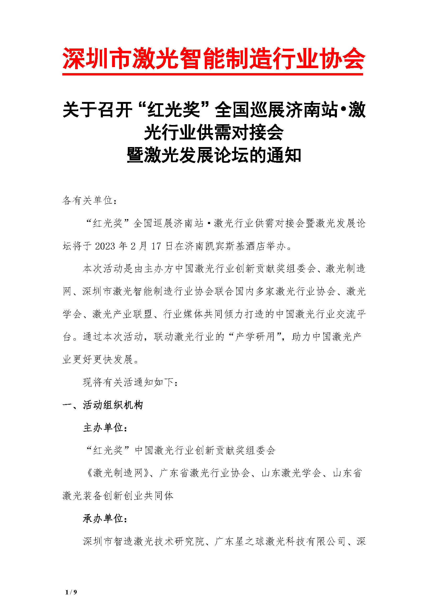 关于召开“红光奖”激光行业供需对接会暨激光发展论坛的通知