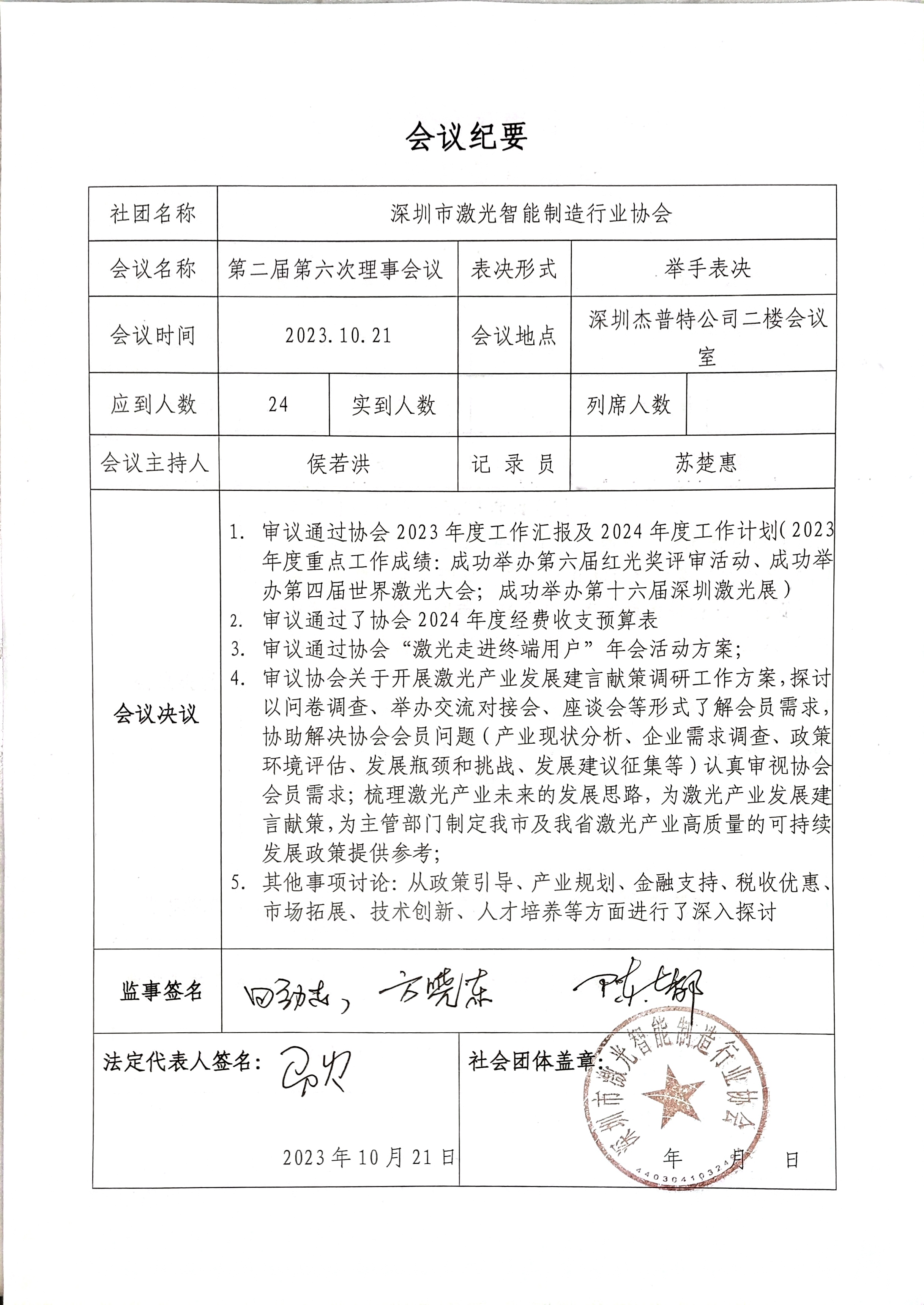 深激协二届六次理事会纪要