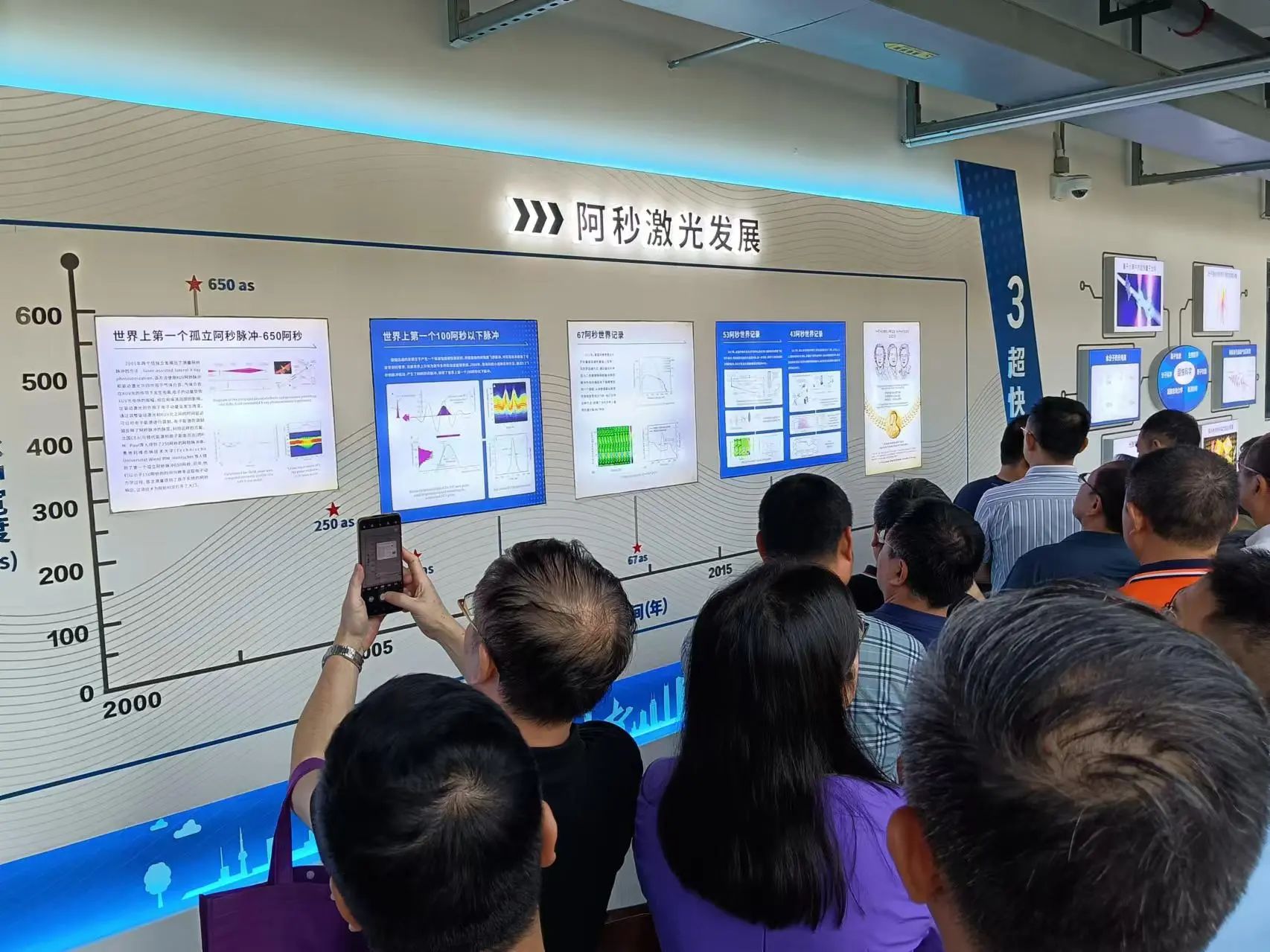 松山湖材料实验室-阿秒科学中心由中科院物理所和松山湖材料实验室共建。该中心以国际领先的超快物质科学与技术研究为目标,旨在推动提升我国在超快科学领域的综合竞争力。来到阿秒科学中心,这里所展示的前沿科技成果让参观团成员“大开眼界”。大家深入了解了阿秒激光脉冲的诞生、阿秒激光的发展历程、阿秒光学研究背景及方向、超快科学进展与案例以及阿秒光学的研究成果。