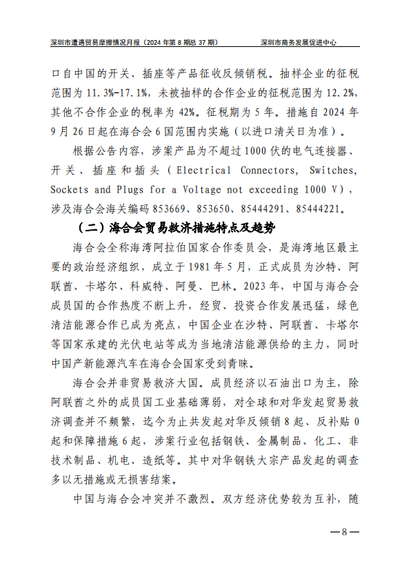 深圳市商务发展促进中心:2024 年 8 月深圳市遭遇贸易摩擦情况月报