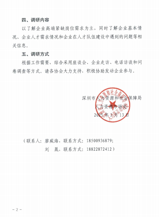 调研内容:了解高端装备与仪器企业高端紧缺岗位需求,围绕“深圳市‘20+8’重点产业高端紧缺岗位清单”的编制进行内容与意见收集。