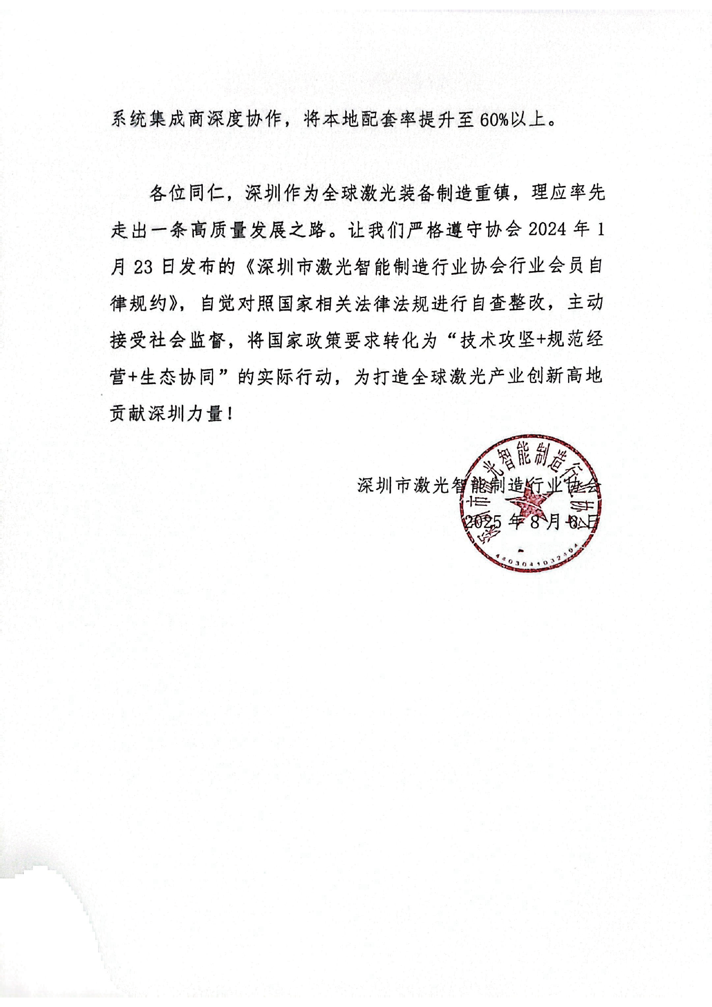 taptap点点链接关于响应国家号召破除激光行业“内卷式”竞争倡议书