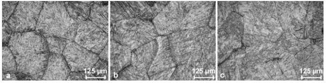 图3.2 FZ的组织:(a)0.8kW,17mm / s,(b)1 kW,50mm / s, (c)是b中的马氏体结构